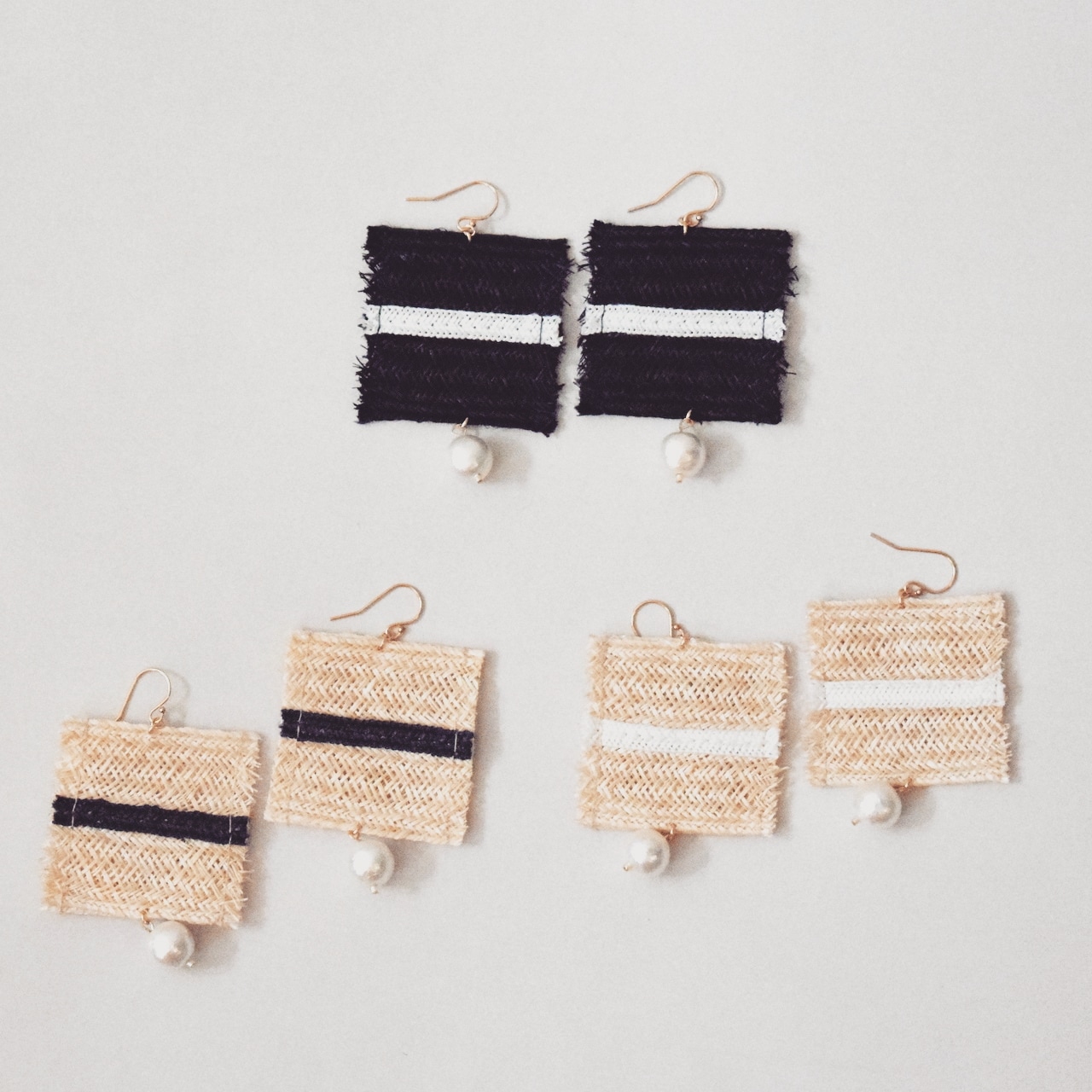 天然素材である麻ブレードとコットンパールのハンドメイドブレス