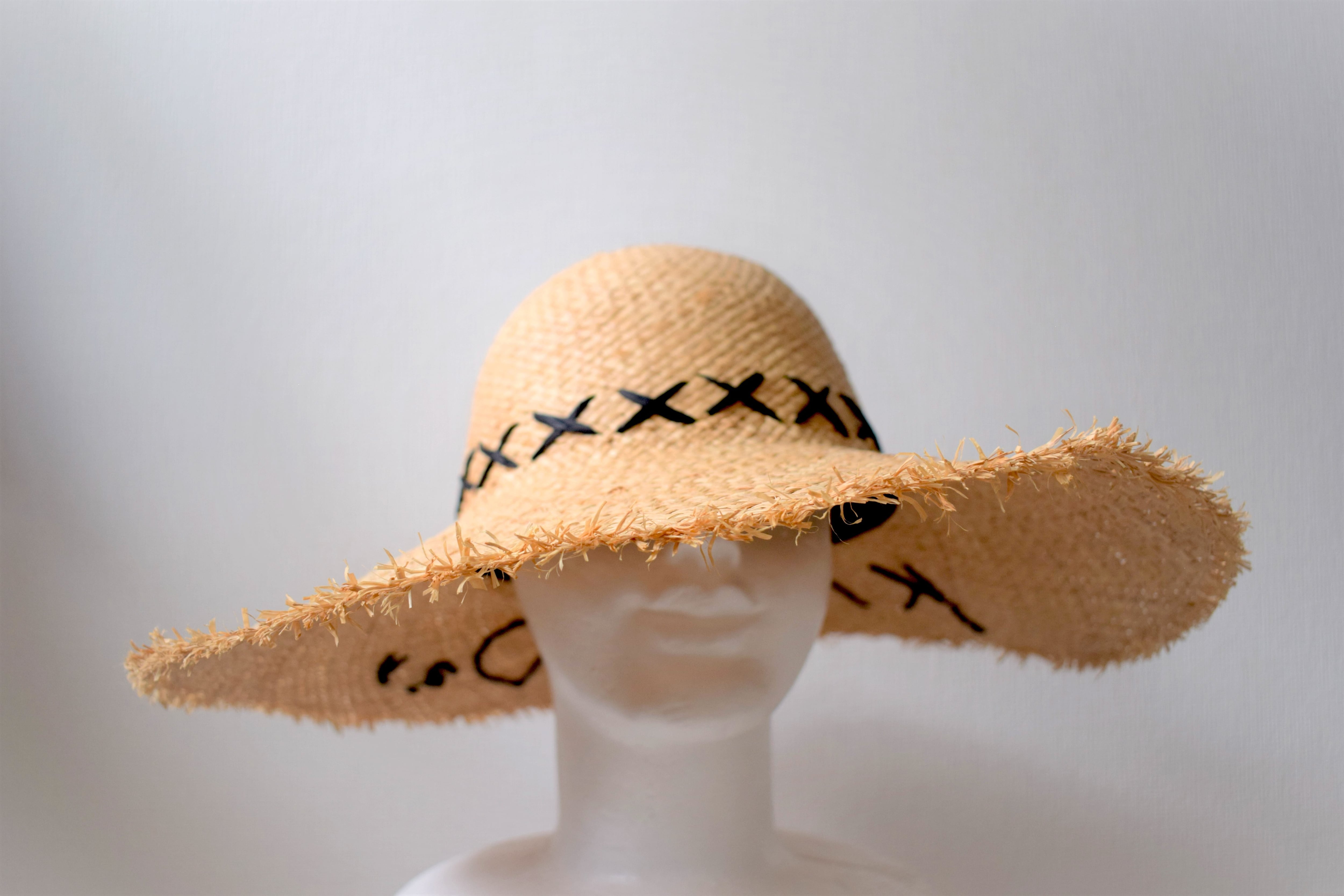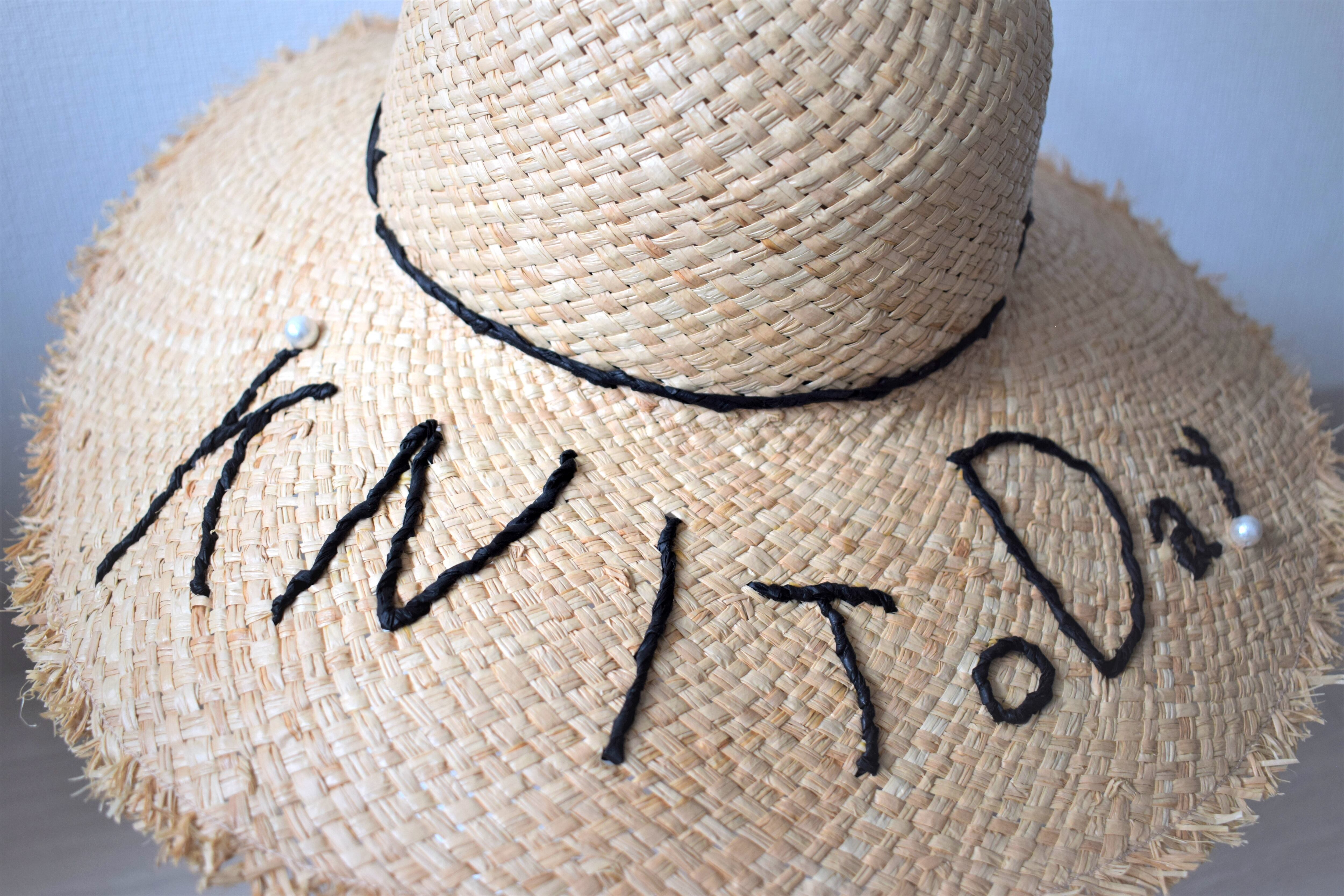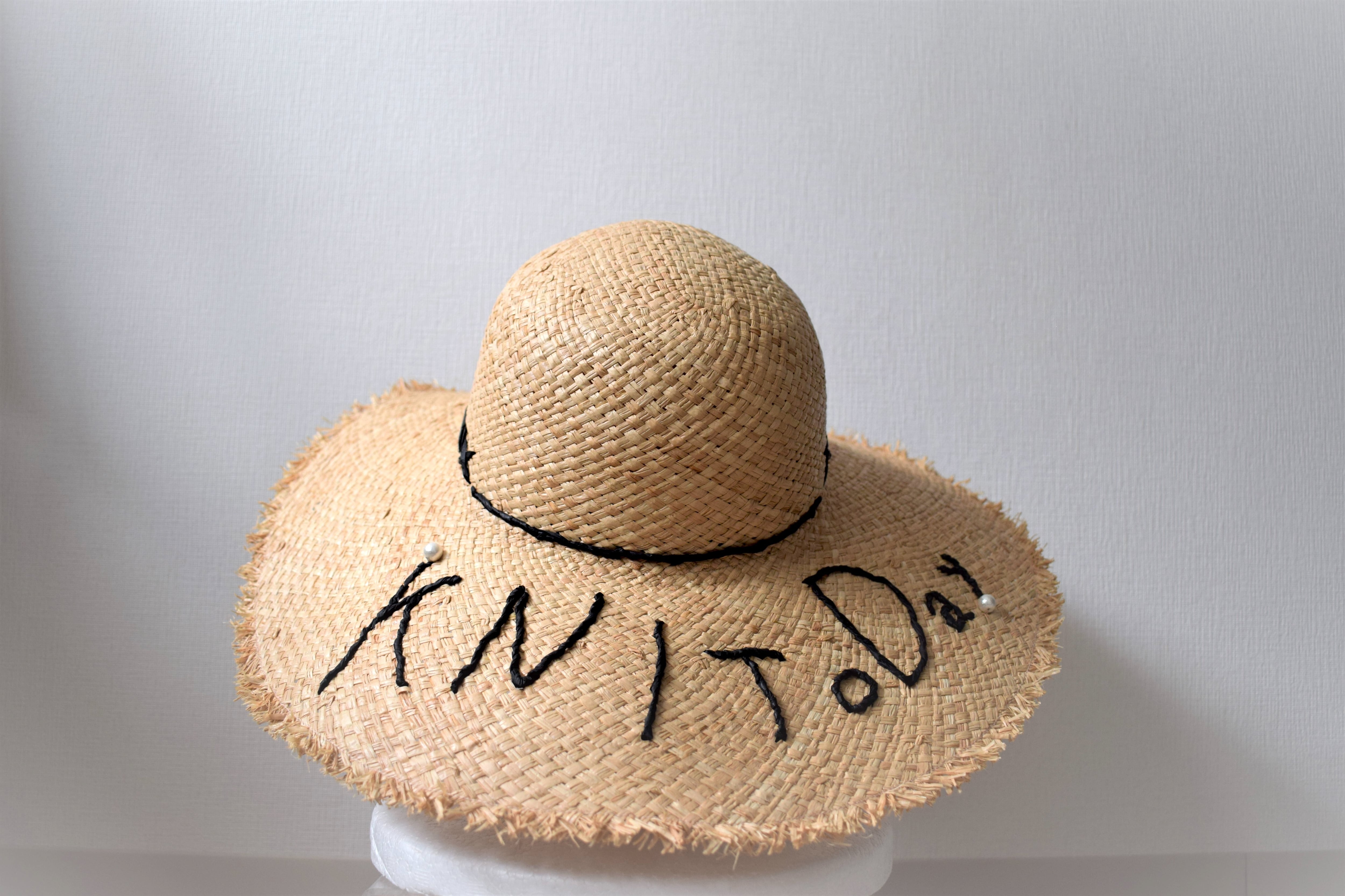 ライフィア素材のハットにペーパー(指定外繊維)でKINToDayのロゴを刺繍したサマーハットです。